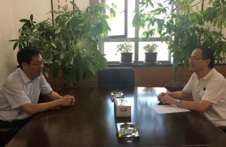 新疆维吾尔自治区地震局局长王海涛(左)会见张有林