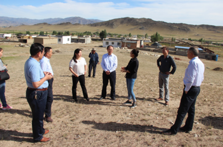 张有林(右4)在青河县副县长刘娜娜(右6)等陪同下察看拟建的青河地震前兆台地址