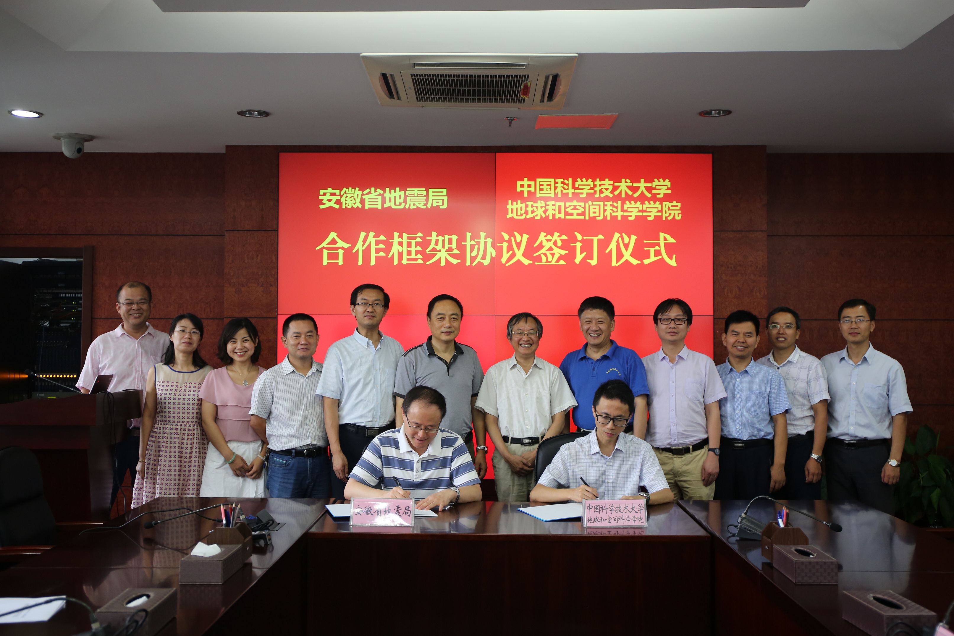 为全面贯彻落实习近平总书记防灾减灾救灾新思想新理念新战略,落实中国地震局党组关于全面深化改革的部署和要求,以及全国科技大会和全国地震科技创新大会精神,不断提升安徽防震减灾综合能力,8月12日上午,安徽省地震局与中国科学技术大学地球和空间科学学院签订合作框架协议。中国科学技术大学党委常委、副校长周先意,安徽省地震局党组书记、局长刘欣,党组成员、副局长张有林出席协议签订仪式,中国科学技术大学地球和空间科学学院,省地震局办公室、人事处、监测预报处、预报中心、信息中心负责人和有关人员参加了仪式。